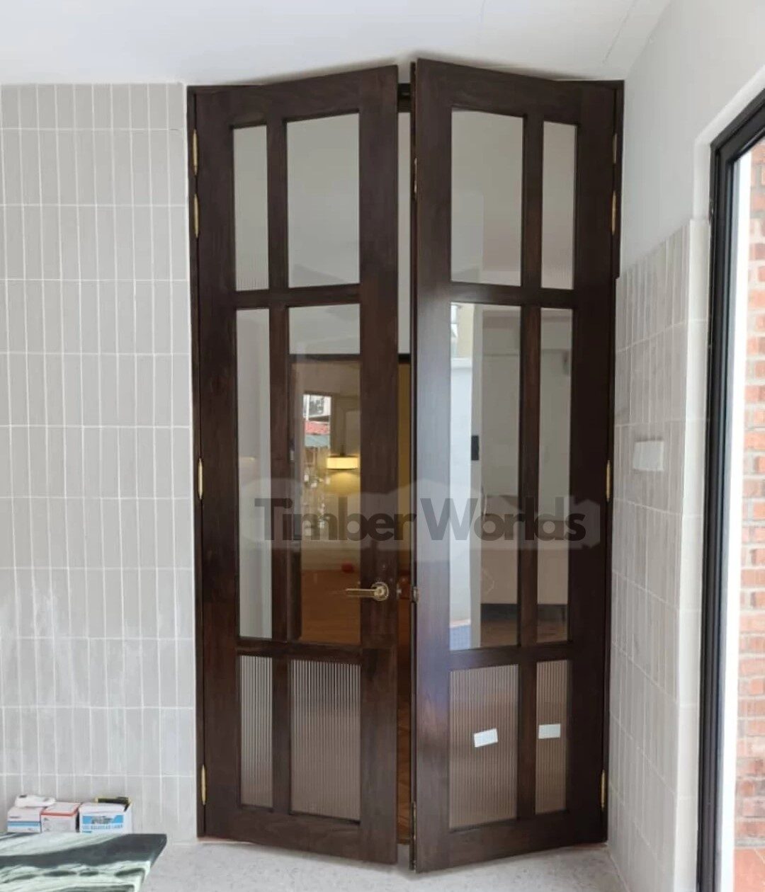 Timber doors showcase the natural beauty of wood, including grains, knots, and color differences.